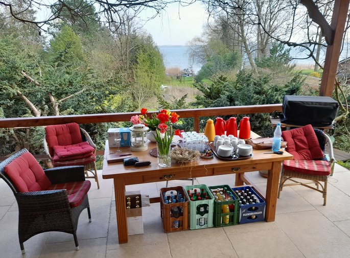 Danach Ausklang auf der Terrasse der Dorfstraße 55 mit Getränken, einem kleinen Snack und angeregter Unterhaltung.
