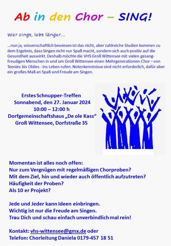 Der im letzten Jahr neu gegründete Kulturverein SEE AN! Die Kulturbühne Groß Wittensee startet auch im neuen Jahr mit spannenden Aktionen. Neben der Unterstützung der VHS Groß Wittensee zur Gründung eines Chores wird es im Februar spannend bei einem Krimi-Live-Hörspiel.