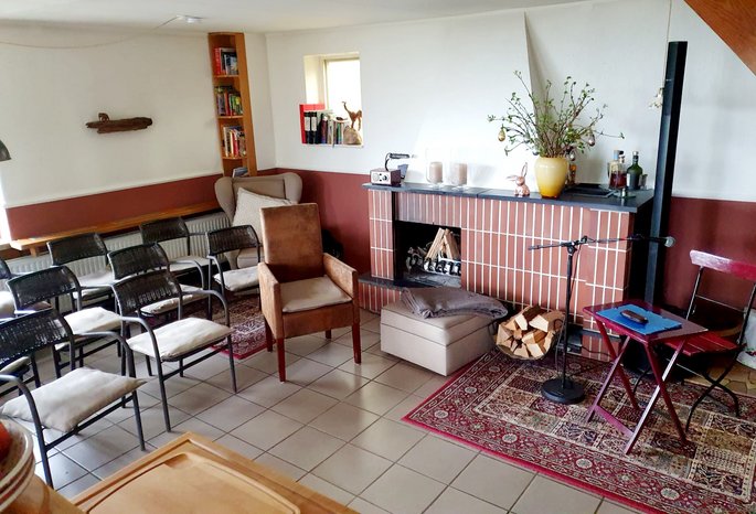 Titel für die Auftaktveranstaltung war „Bi uns to Hus – Wohnzimmerkultur“ - und tatsächlich hatten zwei der Initiatoren kurzerhand das Wohnzimmer ihres Hauses ausgeräumt, wie in einem kleinen Privattheater 4 Reihen à 5 Stühle und Sessel aufgestellt (deshalb auch die begrenzte Teilnehmerzahl – zwei zusätzliche Gäste fanden dann auf der Fensterbank Platz!). Am praktischen Beispiel wurde so demonstriert, wie lebendig kulturelles Leben sich auch jenseits der Metropolen zeigen kann, wenn Menschen bereit sind, sich dafür zu engagieren. Die Gäste erlebten zwei köstlich-kurzweilige Stunden mit einer Lesung und Live-Musik. In der Pause standen auf der Terrasse Getränke und Kuchen bereit, es wurde angeregt geplaudert – am Ende überall zufriedene, beglückte Gesichter!