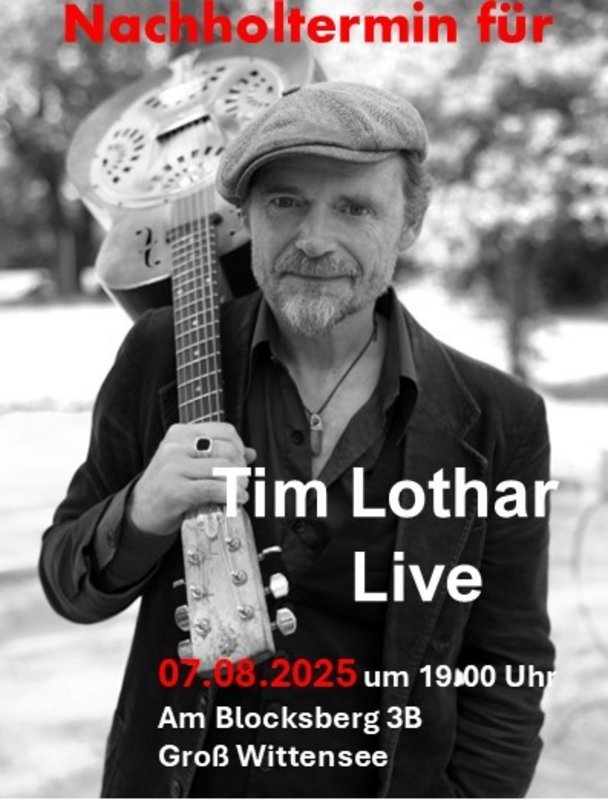 Bereits zwei Mal, 2023 und 2024, gab der dänisch-canadische Singer/Songwriter Tim Lothar auf Einladung des Kulturvereins SEE AN! Kulturbühne Groß Wittensee wunderbare und gut besuchte Konzerte in der Künstler-Werkstatt von Knud Plambeck am Blocksberg 3b. Wurde im ersten Jahr noch geschnuppert, kamen im letzten Jahr schon einige Besucher mit Decken und Picknick-Körben, schlenderten vor und nach dem Konzert durch den Garten, der direkt an den Wittensee grenzt, und genossen bei sommerlichen Temperaturen die entspannte Atmosphäre.